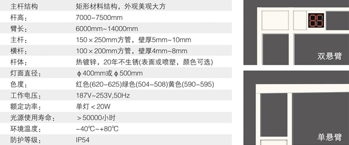 光源采用進口超高亮度LED。燈殼采用一次性鋁壓鑄或工程塑料注塑成型,燈盤發(fā)光面直徑為300mm. 400mm。燈桿選用優(yōu)質(zhì)鋼板加工成型,經(jīng)熱鍍鋅處理后表面噴塑。各項技術(shù)參數(shù)均符合中華人民共和國道路交通信號燈GB14887-2011標準。