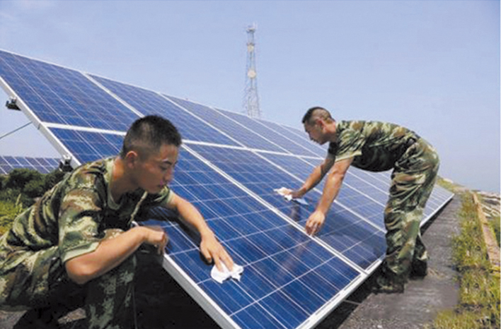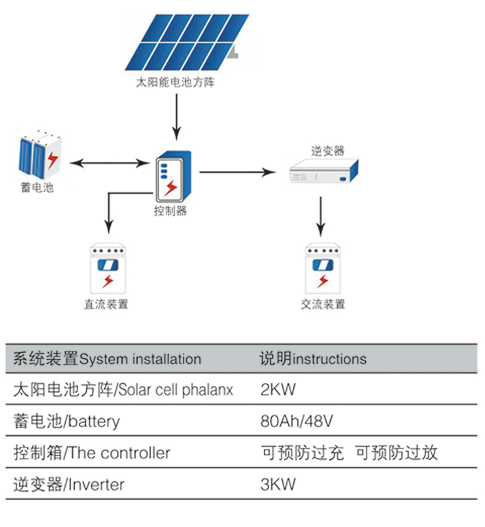 白天通過太陽電池方陣發(fā)的電儲存在蓄電池電池中,滿足軍隊營區(qū)生活照明和辦公設(shè)施使用。……
