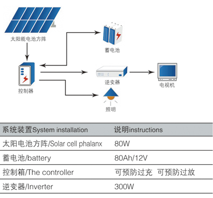 太陽能光伏電改善了偏遠地區(qū)的牧民、鄉(xiāng)村居民的生活,并給畜牧生產、農業(yè)生產、家畜飼養(yǎng)、灌溉、教育、醫(yī)療設施等提供了永續(xù)的太陽能電力。該太陽能供電系統(tǒng)能夠滿足供牧民生活照明和娛樂之用。